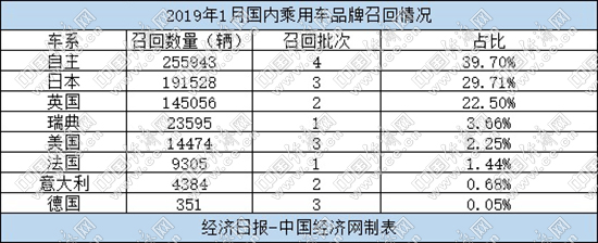 其中,1月,因“高田氣囊”事件,共有280105輛汽車被召回,占召回總量的43.45%;此外,以車系來看,自主品牌共召回汽車255943輛,占總量的39.70%,數量最多。