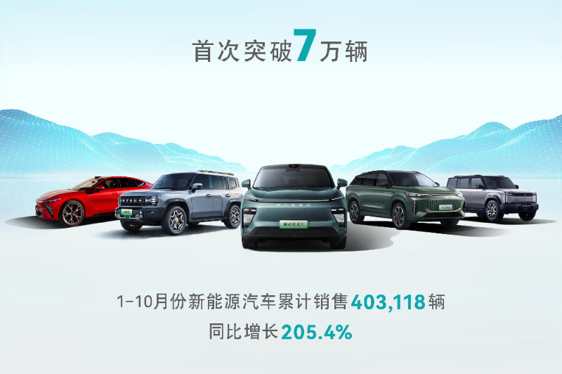 奇瑞控股集團發布10月銷量快報,集團總銷量272,155輛,同比增長35.9%,其中新能源銷量71,330輛,同比增長342.1%,首次突破7萬輛大關,創造單月新能源銷量歷史新高。