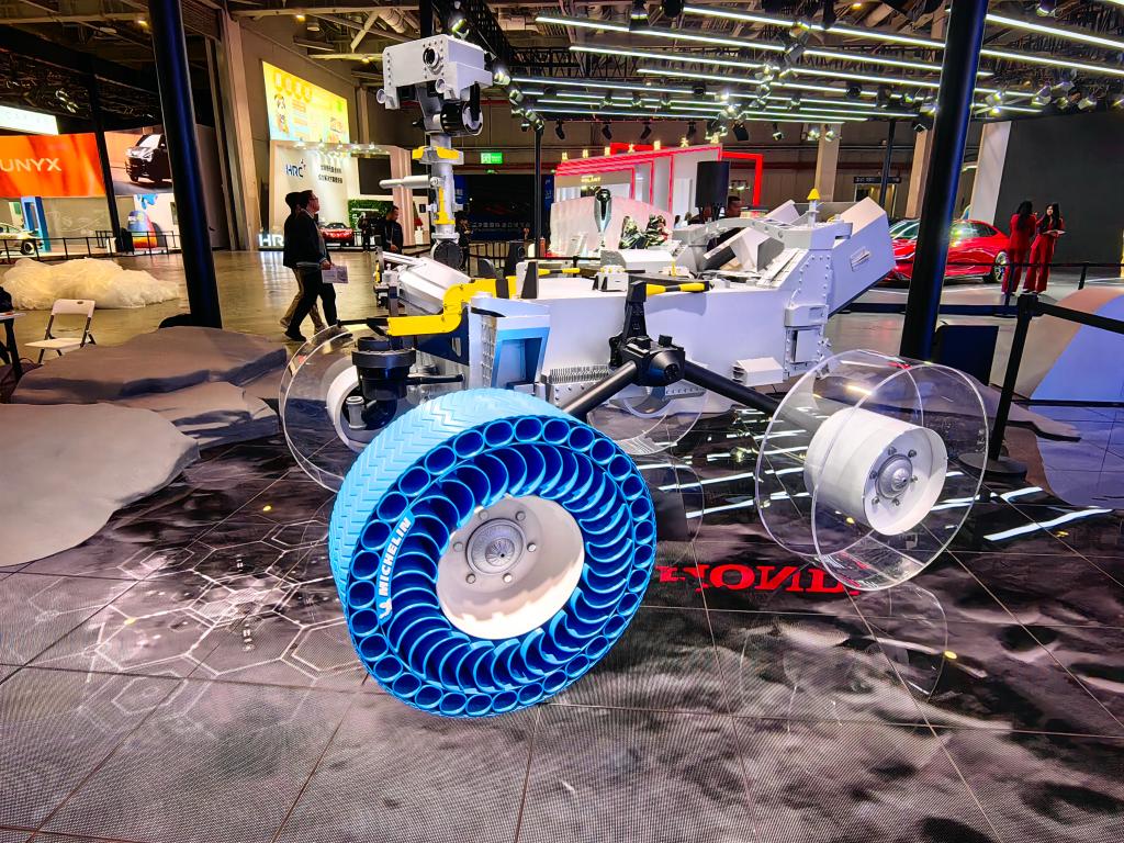 進博會期間,米其林將亞洲首發一款月球探測車專用的免充氣輪胎。新華社記者周蕊 攝