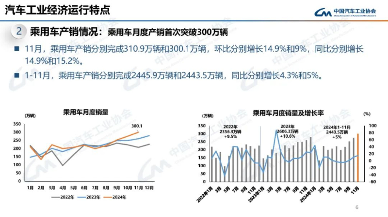 | 中汽協:11月乘用車月度產銷首次突破300萬輛,新能源車產銷突破150萬輛 |