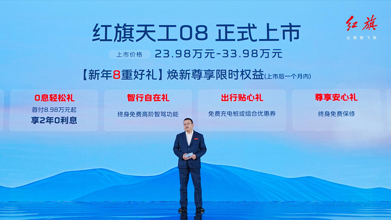 “旗創新高,天工逐耀”,1月7日,在長春一汽研發創新基地舉行的“燃動冰雪,見證‘相信’——紅旗天工08產品上市發布會”上,紅旗智造中大型豪華純電SUV天工08正式上市,以領先技術和卓越實力為用戶提供高品質出行新選擇。回望2024年,一汽紅旗銷量突破40萬輛,以強勁增勢再攀歷史高峰。站在40萬銷量新起點,天工08將以進取之姿為2025年新征程踏出堅實首步。