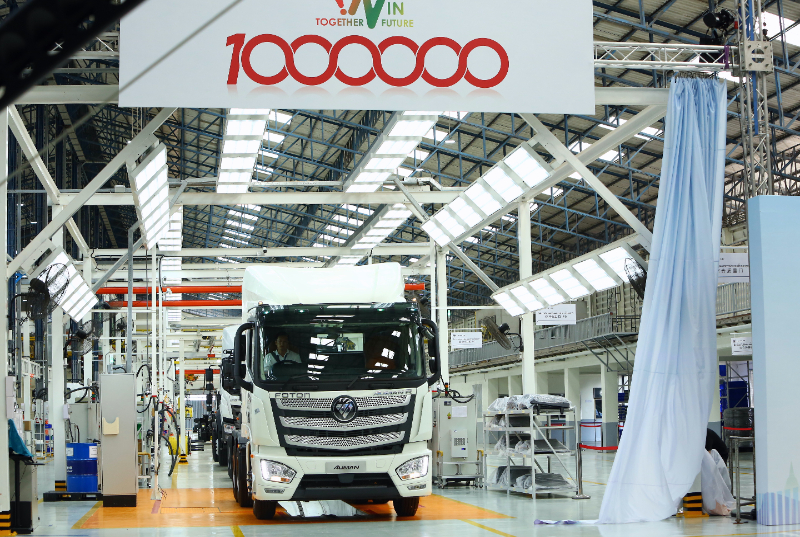 (資料圖片)這是2024年11月27日在泰國北欖府的北汽福田泰國工廠拍攝的北汽福田商用汽車在海外銷售第100萬輛車下線儀式現場。新華社記者 孫瑋彤 攝