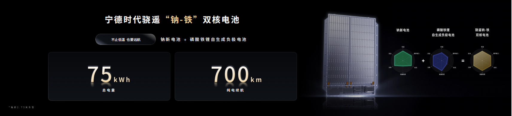 鈉-鐵雙核電池——:鈉新電池+磷酸鐵鋰自生成負極電池,充分利用鈉新電池的低溫性能,為用戶帶來不止低溫更要遠航的極致體驗 。