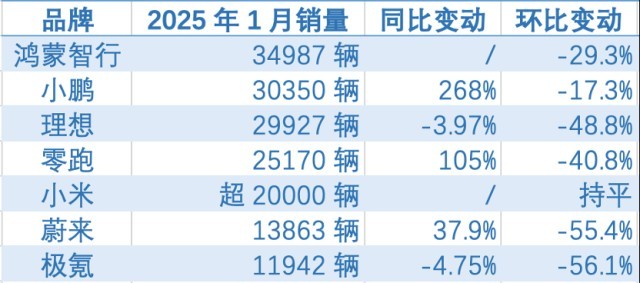 2月1日,多家造車新勢力陸續公布了2025年首月的銷量數據。受春節車市銷售淡季的影響,今年1月的汽車消費市場整體表現不及去年年末,不少車企的銷量出現了較為明顯的環比下滑。不過,相較于2024年1月,車市仍舊實現了顯著的同比增長。