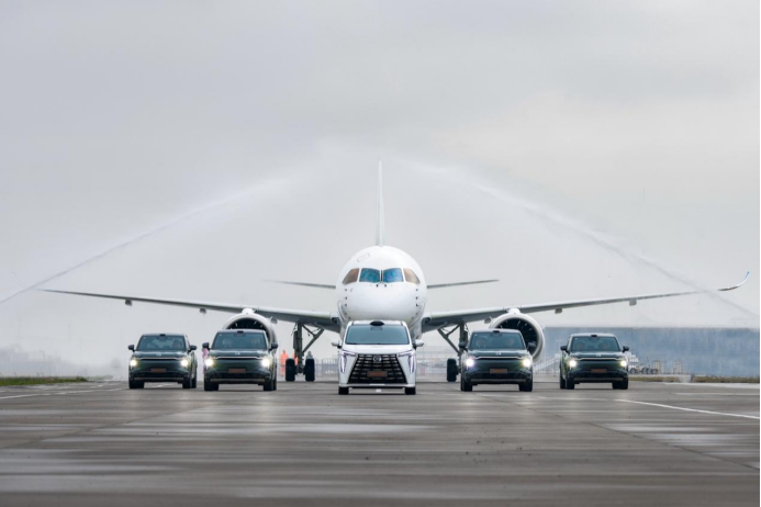 現在,飛機與汽車準備來一次近距離接觸,主角就是廣汽傳祺和C919。2025年3月7日,珠海航展中心,“千里智行 始于向往”傳祺向往車系正式發布。發布會現場,國產大飛機C919“傳祺向往號”滿載著嘉賓來到現場,并在傳祺向往S7、M8領航下,穿過象征民航界最高禮儀的“水門禮”,開進汽車發布會。