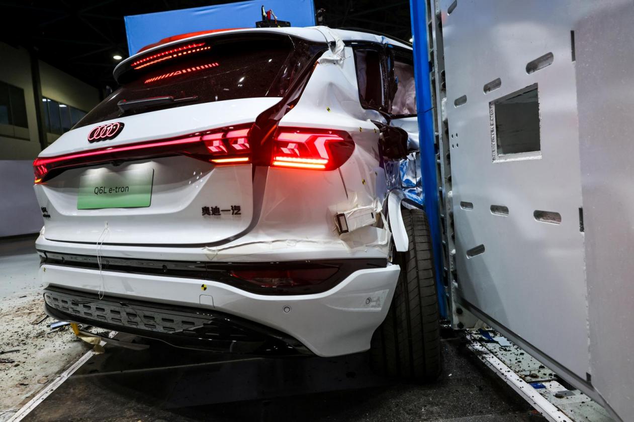 一汽奧迪Q6L e-tron碰撞前處于貨車與剛性柱體之間