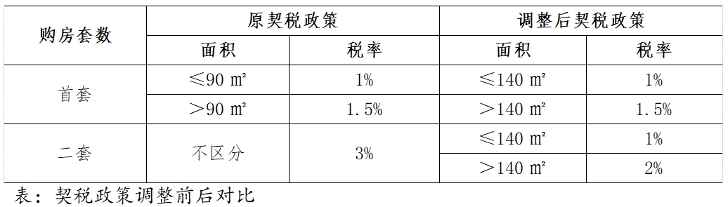 契稅方面,對(duì)個(gè)人購買家庭唯一住房(家庭成員范圍包括購房人、配偶以及未成年子女,下同),面積為140平方米及以下的,減按1%的稅率征收契稅;面積為140平方米以上的,減按1.5%的稅率征收契稅。對(duì)個(gè)人購買家庭第二套住房,面積為140平方米及以下的,減按1%的稅率征收契稅;面積為140平方米以上的,減按2%的稅率征收契稅。
