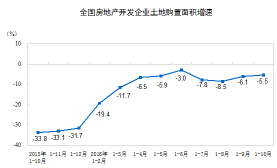 1-10月份,東部地區房地產開發投資46416億元,同比增長5.0%,增速比1-9月份提高1.4個百分點;中部地區投資18727億元,增長11.1%,增速提高0.2個百分點;西部地區投資18832億元,增長6.1%,增速回落0.2個百分點。 1-10月份,房地產開發企業房屋施工面積730981萬平方米,同比增長3.3%,增速比1-9月份提高0.1個百分點。其中,住宅施工面積501471萬平方米,增長1.8%。房屋新開工面積137375萬平方米,增長8.1%,增速提高1.3個百分點。其中,住宅新開工面積94996萬平方米,增長8.3%。房屋竣工面積65211萬平方米,增長6.6%,增速回落5.5個百分點。其中,住宅竣工面積47828萬平方米,增長5.7%。 1-10月份,房地產開發企業土地購置面積16873萬平方米,同比下降5.5%,降幅比1-9月份收窄0.6個百分點;土地成交價款6764億元,增長16.7%,增速提高3.4個百分點。