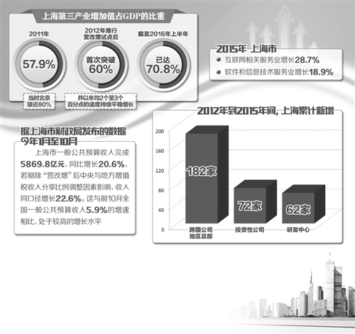 再過一個多月,上海作為全國第一個營改增試點,已平穩(wěn)運行5年。5年里,伴隨著營改增的改革進(jìn)程,上海產(chǎn)業(yè)結(jié)構(gòu)調(diào)整、經(jīng)濟(jì)轉(zhuǎn)型升級效果顯著。近日,《經(jīng)濟(jì)日報》記者來到上海,深入調(diào)研上海營改增成效。 “首試”營改增正逢時 為何營改增首個試點選在上海? 上海財經(jīng)大學(xué)公共經(jīng)濟(jì)與管理學(xué)院教授胡怡建告訴記者,中央選擇上海作為試點城市,是因為其具備財力較強(qiáng)、政府管理較為規(guī)范等良好改革條件;上海爭當(dāng)試點,則是由于經(jīng)濟(jì)轉(zhuǎn)型升級需求迫在眉睫。 “營改增方案出臺前,正在制定‘十二五’規(guī)劃的上海,遇到發(fā)展‘瓶頸’?!焙ū硎?,這在產(chǎn)業(yè)結(jié)構(gòu)上表現(xiàn)得尤為明顯。2011年,上海第三產(chǎn)業(yè)增加值占GDP的比重為57.9%,當(dāng)時北京接近80%?!皩ι虾碚f,要想謀求強(qiáng)勁的可持續(xù)發(fā)展,必須優(yōu)化產(chǎn)業(yè)結(jié)構(gòu),發(fā)展現(xiàn)代服務(wù)業(yè)、提高第三產(chǎn)業(yè)的比重。恰在此時,營改增帶來了契機(jī)。”胡怡建說。 這個契機(jī)有多重要?據(jù)了解,當(dāng)時上海服務(wù)業(yè)發(fā)展面臨3個制度性瓶頸:體制、管制和稅制。除了體制上需要改變自上而下的管理方式、適應(yīng)市場橫向發(fā)展的需要,管制上需要解決金融等服務(wù)業(yè)門檻較高等問題之外,還迫切需要解決營業(yè)稅重復(fù)征稅問題。稅收問題不僅影響服務(wù)業(yè)發(fā)展,還影響到工商業(yè)的發(fā)展。 首先,重復(fù)征稅“拖住”服務(wù)業(yè)發(fā)展腳步?!氨热缃煌ㄟ\輸業(yè),繳納營業(yè)稅時雖然按3%征稅,但買進(jìn)的汽油、汽車等材料和設(shè)備時候,需要支付17%的增值稅,包括增值稅在內(nèi)的支出,又包含在運費收入中,征收了3%的營業(yè)稅,因此,存在重復(fù)征稅等情況?!敝卸惥W(wǎng)稅務(wù)師事務(wù)所總裁王冬生分析說。 其次,由于服務(wù)業(yè)處于產(chǎn)業(yè)鏈的中間環(huán)節(jié),上游和下游都是工商業(yè),“兩頭”都繳納增值稅可抵扣、中間環(huán)節(jié)卻是營業(yè)稅不可抵扣,導(dǎo)致抵扣鏈條不通暢。“只有把中間環(huán)節(jié)打通,中間抵扣上游,下游抵扣中間,才有助于在產(chǎn)業(yè)鏈上達(dá)到公平合理的稅負(fù)水平。這也正是營改增‘改在服務(wù)業(yè),惠在工商業(yè)’的重要原因。”胡怡建分析說。 正是得益于這樣的促進(jìn)作用,營改增后上海的經(jīng)濟(jì)結(jié)構(gòu)調(diào)整趨勢明顯,第二產(chǎn)業(yè)除高端制造業(yè)及建筑業(yè)外,傳統(tǒng)工業(yè)所占比例呈下降趨勢;與此同時,現(xiàn)代服務(wù)業(yè)引領(lǐng)第三產(chǎn)業(yè)在整個產(chǎn)業(yè)結(jié)構(gòu)中的比例呈逐年上升趨勢。 記者從上海市稅務(wù)局了解到,2012年推行營改增試點后,第三產(chǎn)業(yè)占GDP比重首次突破60%,并以年均2個至3個百分點的速度持續(xù)平穩(wěn)增長。截至2016年上半年,該比重已達(dá)70.8%。 以稅收“減法”換轉(zhuǎn)型“加法” 國家稅務(wù)總局局長王軍曾在一篇文章中寫到,在我國改革開放過程中,財政上的許多增收,不僅不是靠加稅反而是靠減稅來實現(xiàn)的。這一觀點,在上海實施營改增的過程中得以充分驗證。 據(jù)上海市財政局發(fā)布的數(shù)據(jù),今年前10月,上海市一般公共預(yù)算收入完成5869.8億元,同比增長20.6%,若剔除“營改增”后中央與地方增值稅收入分享比例調(diào)整因素影響,收入同口徑增長22.6%。這與前10月全國一般公共預(yù)算收入5.9%的增速相比,處于較高的增長水平。 “從行業(yè)來看,房地產(chǎn)業(yè)、金融業(yè)、租賃和商務(wù)等服務(wù)業(yè)對財政收入增長貢獻(xiàn)較大。”上海市財政局有關(guān)負(fù)責(zé)人分析表示。這些5年前還面臨“瓶頸”、如今卻發(fā)展迅猛的服務(wù)業(yè),其重要動力源泉正是營改增。 據(jù)了解,自2012年啟動營改增試點以來,與應(yīng)納營業(yè)稅相比,上海市試點企業(yè)及試點下游企業(yè)累計減負(fù)1541億元。其中,2012年至2015年減負(fù)1248億元,2016年1月至4月減負(fù)138億元,2016年5月至8月減負(fù)155億元。 “營改增降低了科技研發(fā)、科技服務(wù)企業(yè)的稅負(fù),有利于增加投入、提高效益,增強(qiáng)科技研發(fā)和服務(wù)企業(yè)的發(fā)展動力,形成對創(chuàng)新供給的激勵?!敝袊嗣翊髮W(xué)財政金融學(xué)院教授岳樹民表示。 數(shù)據(jù)也作出了驗證。2015年,上海市互聯(lián)網(wǎng)相關(guān)服務(wù)業(yè)增長28.7%,軟件和信息技術(shù)服務(wù)業(yè)增長18.9%。與此同時,更多的資源正在向上海集聚、向服務(wù)業(yè)集聚。2012年到2015年間,上海累計新增跨國公司地區(qū)總部、投資性公司、研發(fā)中心分別達(dá)182家、72家和62家。 “稅率降低了,企業(yè)‘包包’里的錢就會多一些,企業(yè)發(fā)展生產(chǎn)和投資的積極性及能力也相應(yīng)提高,由此促進(jìn)了經(jīng)濟(jì)增長,擴(kuò)大了國家稅基,財政收入自然會相應(yīng)增加?!蓖踯姺治稣f。他在上海調(diào)研營改增時還進(jìn)一步透露,今年1月至9月,全國營改增累計減稅達(dá)3267億元,減稅規(guī)模呈逐步擴(kuò)大態(tài)勢,包括金融業(yè)在內(nèi)
