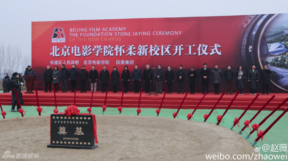 12月25日,北京電影學院懷柔新校區開工儀式舉行。趙薇、黃渤作為資深校友現身奠基儀式,穿羽絨服鏟土。趙薇贊“地杰人靈之地!”