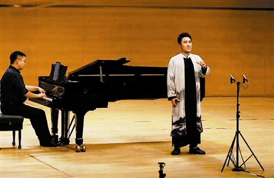 在上半場演出中,趙天刃演唱是以鋼琴伴奏為主,其中有一部分歌曲采用了馬頭琴、京胡、古箏等特色樂器與聲樂演唱共同表演的形式,創新之處為觀眾們帶來了耳目一新的藝術感受。選取的歌曲《幽蘭操》《父親的草原母親的河》《愛永在》等,更為注重專業性與藝術性;下半場由青年指揮孫敬凱執棒天津民族樂團擔任伴奏,所演唱的《在那遙遠的地方》《阿拉木汗》《想親親》等多為地方民歌及地方風格歌曲。整場演出趙天刃高亢、溫暖且具有磁性的嗓音,贏得了觀眾熱烈的掌聲。女高音歌唱家劉慧慧、于淼加盟了演出,為觀眾奉獻了各自的拿手曲目。(記者高麗 記者王津攝)
