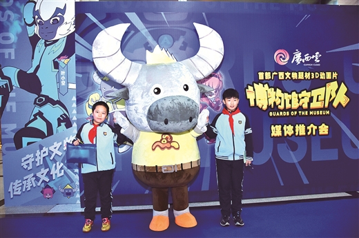 小朋友們爭相與“牛力力”親密互動。 “博物館守衛隊,出發!”伴隨著一聲響亮的口號,小勇士們駕車雷霆出擊,踏上文物保護的傳奇之旅。 在1月8日舉行的《博物館守衛隊》媒體推介會上,“葉小空”“牛力力”“桃香香”三名小勇士帥氣亮相,牢牢地吸引住孩子們的目光;而現場展示的炫酷3D動作捕捉技術、以全息立體投影形式出現的珍貴文物,則讓“大人們”挪不開腳步。 作為首部廣西文物題材3D動畫片,《博物館守衛隊》集合了多種對比強烈的元素——前沿科技和古老文物交相輝映,童真童趣與厚重歷史熔于一爐,流行文化與傳統文化無縫銜接……在這里,創意的奇思妙想打破時空的隔閡,讓文物、歷史和文化都變得鮮活起來。 創意 | “動畫”讓文物“動”起來 習近平總書記就傳承和弘揚中華優秀傳統文化作出一系列重要論述,強調“讓收藏在博物館里的文物、陳列在廣闊大地上的遺產、書寫在古籍里的文字都活起來”;2017年,習近平總書記在廣西視察時強調:讓文物說話,讓歷史說話,讓文化說話。 近年來,各種各樣的傳統文化以更生動、更具創意的方式受到越來越多人的追捧,“到博物館去”也成為一種新風尚。如何更好地挖掘文物價值,講好中國故事,推動中華優秀傳統文化創造性轉化、創新性發展,成為全社會共同思考的問題。 2021年,在自治區黨委宣傳部指導下,廣西日報傳媒集團經過細致的市場調研和充分的研究論證,著手策劃實施動畫連續劇《博物館守衛隊》項目。 博物館中的珍貴文物難以觸摸,蘊涵在文物中的傳統文化無形無質,要讓文化遺產活起來、動起來,動畫的表現形式是絕佳選擇。 創作團隊緊扣時代脈搏,確定了創作思路:以廣西各地博物館館藏文物為媒介、廣西自然生態為背景,講述一群勇敢、善良的小動物團結一心守護珍貴文物的故事。圍繞這一核心目標,創作團隊從角色設計、故事內容、制作技術等方面不斷探索,努力通過引人入勝的故事、富有魅力的角色、擬人化的萌態表達,打造一部思想性和藝術性俱佳的動畫精品。 數字技術和高科技手段激活了傳統文化,也激活了人們心靈深處的傳統文化基因,搭建起大眾和文化之間的橋梁。在媒體推介會上,《博物館守衛隊》的樣片和MV得到了業界專家和觀眾們的充分肯定,尤其是小觀眾們,更是被既萌又酷的三位主角“葉小空”“牛力力”“桃香香”深深吸引,蜂擁而上熱情地圍著人偶拍照。 亮點 | 科技讓文化遺產“活”起來 《博物館守衛隊》緊緊圍繞廣西優秀傳統文化這一核心線索,不僅科普文物背后的歷史文化知識,還揭示了人與自然和諧共生的深刻主題。 故事發生在一個神奇的卡通世界,在一座以北部灣海域為原型打造的博物島上,博物館守衛隊為保護文物與“宇宙怪盜”展開一場正義與邪惡的較量。博物館守衛隊隊員以白頭葉猴、西林水牛、巴馬香豬三只具有廣西地域特色的可愛小動物為原型進行角色設計,宇宙怪盜團伙則是鱷龜和澳洲蜥蜴兩個外來物種。角色形象生動,性格特征鮮明,給觀眾留下深刻的印象。 為了塑造活靈活現的角色,動畫創作采用了多種行業領先的前沿技術。《博物館守衛隊》聯合出品方廣西峰和云啟文化投資有限公司副總經理彭拓棟介紹,片中采用了實時動作捕捉和實時動畫渲染技術,每個角色背后都有一個演員真實表演,通過捕捉演員的面部表情和肢體動作,現場實時渲染輸出帶現場錄音的動畫鏡頭。這一技術的運用打破了以往3D動畫復雜的制作流程,實現了制作全過程可視化,大大提高了制作效率和藝術質量。 精彩的故事內核、完美的表現形式,為作品插上一飛沖天的雙翼。通過《博物館守衛隊》的精彩演繹,深藏在博物館內的文物“活起來”“動起來”,飛進孩子們的精神世界,潛移默化、潤物無聲,進一步推動全社會增強歷史自覺、堅定文化自信。 反響 | 創新讓傳統文化“火”起來 挖掘文物價值,講好中國故事。《博物館守衛隊》以富有創意的奇思妙想讓珍寶“復活”,讓“高冷”的歷史文化遺產變得時尚而鮮活,展現了廣西多姿多彩的歷史文化,這是中華優秀傳統文化的創新化表達,也是一部兼具娛樂性和藝術價值的精品力作。 在媒體推介會上,來自動漫、文博、教育等各行業的專家對《博物館守衛隊》給予了高度評價。 南寧市中山路小學校長覃勇在接受采訪時稱,《博物館守衛隊》寓教于樂,讓學生有興趣認識更多的廣西文物,能讓他們學到更多知識。 廣西藝術學院影視與傳媒學院院長何清新表示,《博物館守衛隊》以文物保護為故事線索,知識點不僅涉及中華民族優秀傳統文化,還展示了廣西“海上絲綢之路”的海外文化交融史,能夠充分反映出世界文明交流互鑒、命運與共的主題。 廣西動漫協會會長張凱點評,目前以文物為創作題材的動畫片在市場上并不多見,《博物館守衛隊》的推出不僅能為廣大觀眾帶來嶄新的視聽體驗,同時也是對中華優秀傳統文化的傳承和創新性發展,期待這部片子能夠早日與觀眾見面。 文化部優秀專家、中國博物館協會常務理事、廣西博物館協會理事長、自治區博物館二級研究館員吳偉峰教授表示,《博物館守衛隊》用孩子們喜聞樂見的動漫形式展現文物魅力,激活傳統文化,正是對習近平總書記“讓文物說話,讓歷史說話,讓文化說話”重要論述的具體實踐,對于面向青少年和廣大群眾普及文