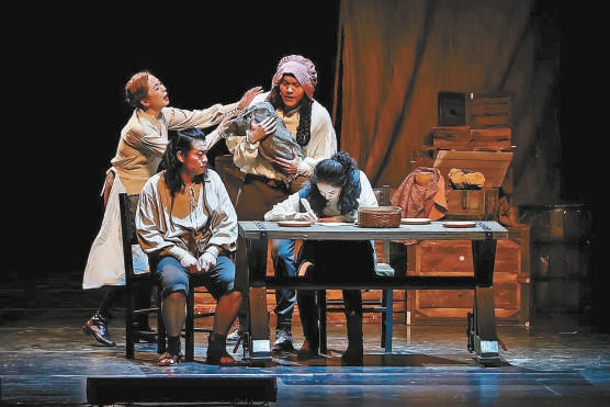 與16世紀“大航海”時代主題相扣,《威廉與我》的舞臺散發著復古氣息。巧妙多變的裝置設計,融合了古典與當代,既像一座微型劇場,又像一艘航行大船,還像一頂恢宏皇冠,也像一處囚籠刑場。劇中四位優秀演員,以幽默詼諧、靈氣詩意、舉重若輕、跳進跳出的表演和身份轉換,分別扮演莎士比亞的童年、青年、中年、老年和其他30多個角色,在有限的時空中,用無限的想象力和表現力,將這位傳奇劇作家一生中的重要事件及作品創作情況串聯起來,演繹出他所處時代的風云變幻及其動蕩漂泊的復雜一生。
