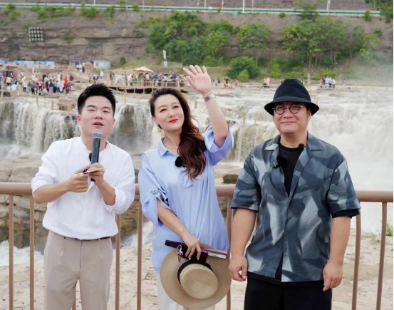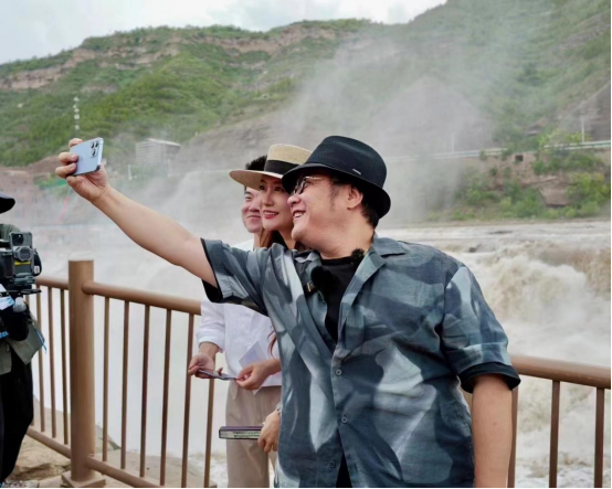 6月13日,二人轉戰臨汾吉縣,與同樣應邀而來的導演寧浩相會于壺口瀑布,共同為家鄉文化代言、為山西文旅發聲。身為臨汾人,卻是第一次來到壺口瀑布,被這座有“黃河心臟”之稱的瀑布深深震撼的譚晶“秒變游客”,不停地與翻涌奔騰的黃河合影、自拍,感受家鄉山水的波瀾壯闊之美。