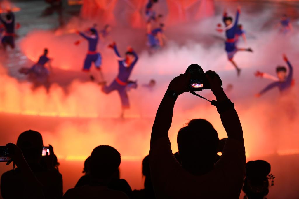9月20日,游客在貴州省雷山縣大塘鎮觀看苗族歌舞詩劇《仰歐桑》。新華社發(陳孝新攝)