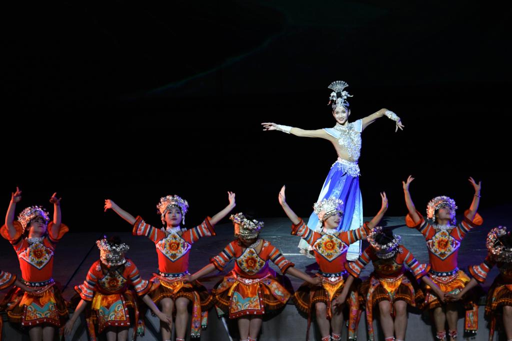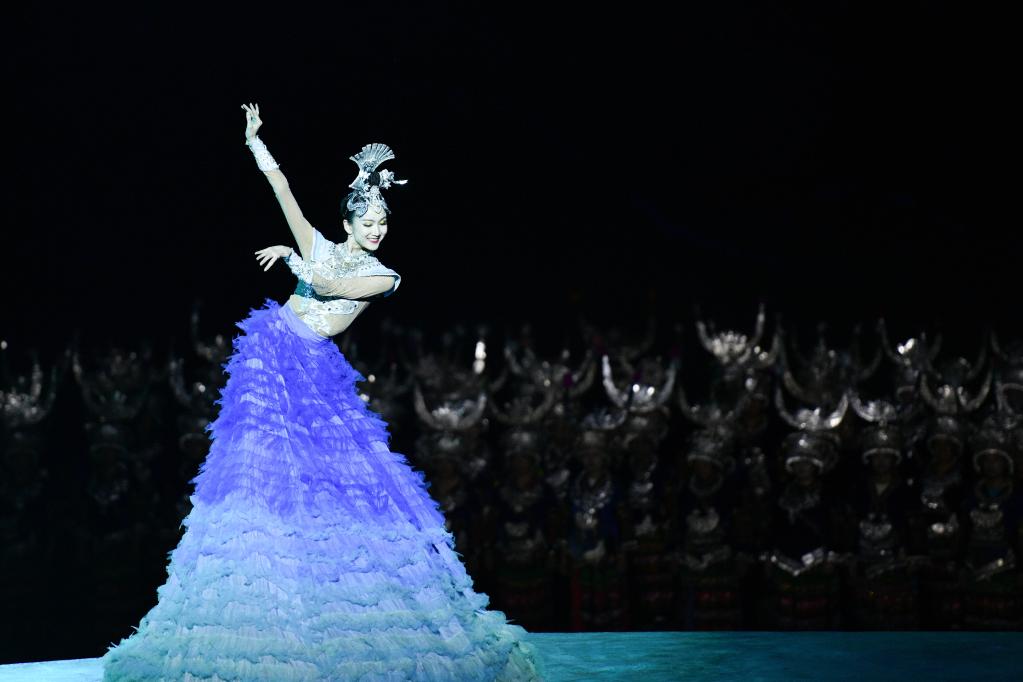 9月20日,演員在貴州省雷山縣大塘鎮表演苗族歌舞詩劇《仰歐桑》。新華社發(楊武魁攝)