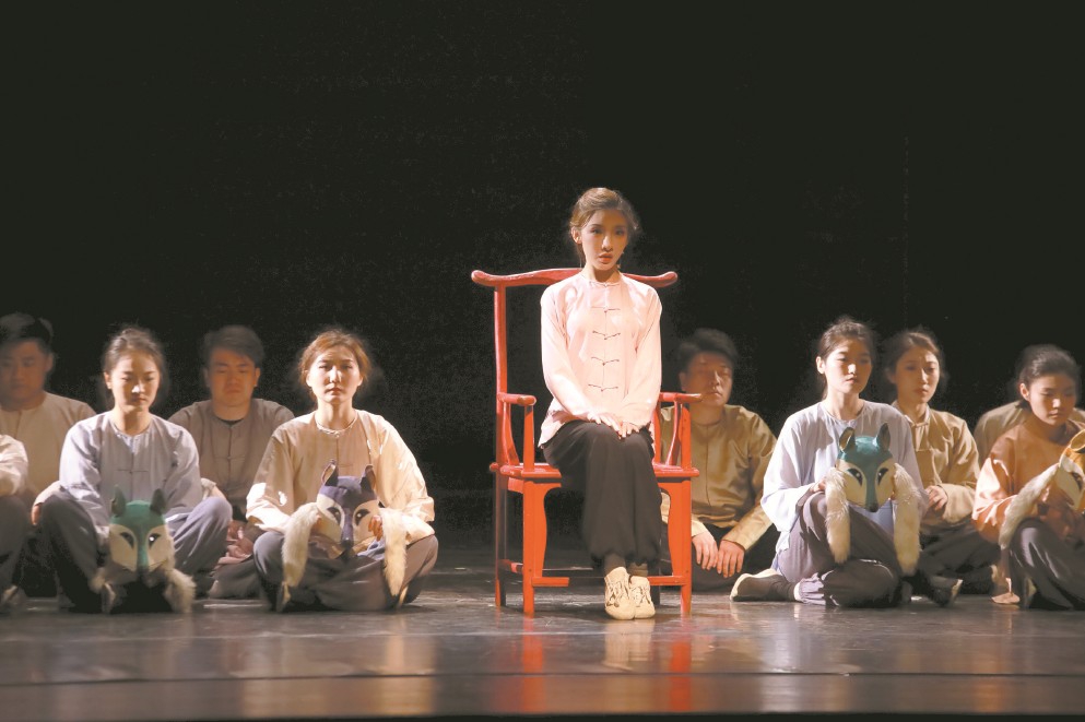 話劇《主角》中,青年演員劉李優優(左二)飾演秦腔名家憶秦娥。 (主辦方供圖)