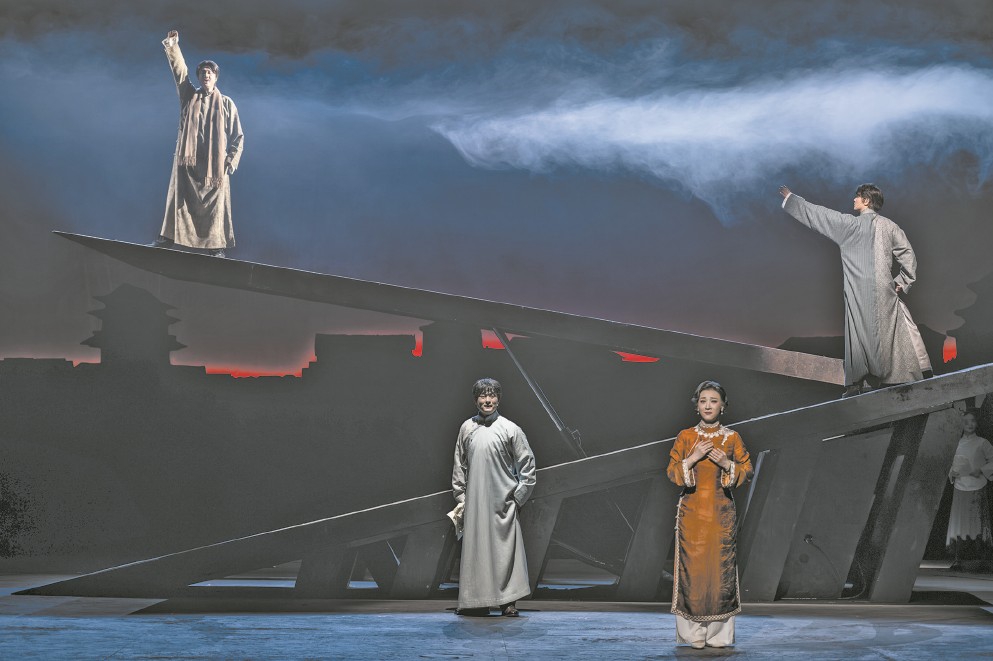 大型原創黃梅戲《延年和喬年》從安慶來到上海,用延喬兄弟二人的家鄉戲向他們致敬。圖為劇照。(演出方供圖)