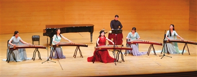 壓軸登場的古箏協奏曲《紫禁·瑤光》堪稱本場演出視聽亮點。吉煒領奏的團隊以傳統箏搭配七聲弦制古箏及復原古樂器筑、軋箏,在王梓碩的打擊樂配合下,既展現宮廷音樂的風雅,又以“玉之光采”頌揚君子品格,古樸與創新的融合贏得全場持久掌聲。