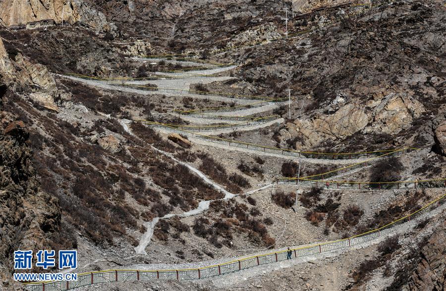 去往查嘎爾達索寺的崎嶇小道(1月4日攝)。查嘎爾達索寺,始建于1160年,是噶舉派祖師米拉日巴的修行圣地之一,在日喀則地區吉隆縣境內。寺廟依山勢而建,起伏錯落,占地面積約8400平方米,全部建筑為木石結構,是一處享有盛名的古跡。新華社記者普布扎西攝