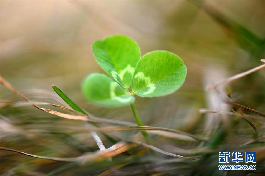 2月18日,在陜西西安植物園,一棵小草鉆出地面。早春時節,隨著氣溫回升,各地春意漸濃。 新華社發(張樹忠 攝)