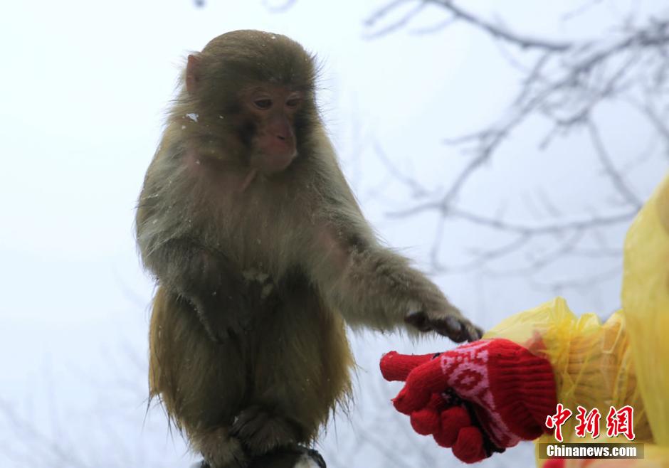 2月22日正值元宵佳節,湖南張家界核心景區武陵源喜降春雪。在黃石寨景區,成群的野生獼猴或在雪中追逐戲鬧,或在樹枝上攀爬跳躍,或蜷縮著身子賣萌,成為張家界武陵源的一道春季新景。吳勇兵 攝