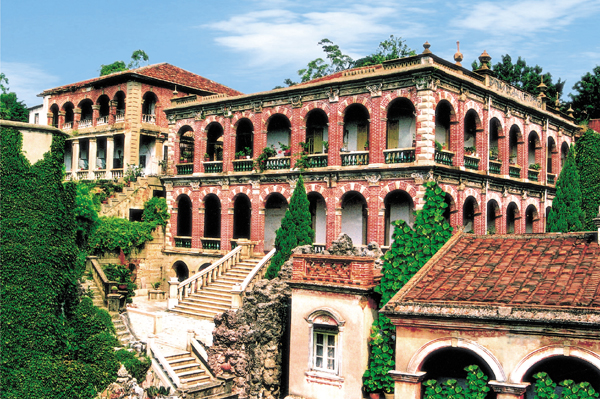 始建于1907年的八卦樓,因其紅色圓頂有八道棱線,頂窗八面朝向,又坐落于八邊形的平臺上,所以稱為“八卦樓”,造型典雅大方,中西合璧,是廈門近代建筑的代表。借鑒巴勒斯坦、希臘、意大利和中國的一些經典建筑風格,設計出這幢融東西方建筑文化于一體的獨特的仿古建筑。