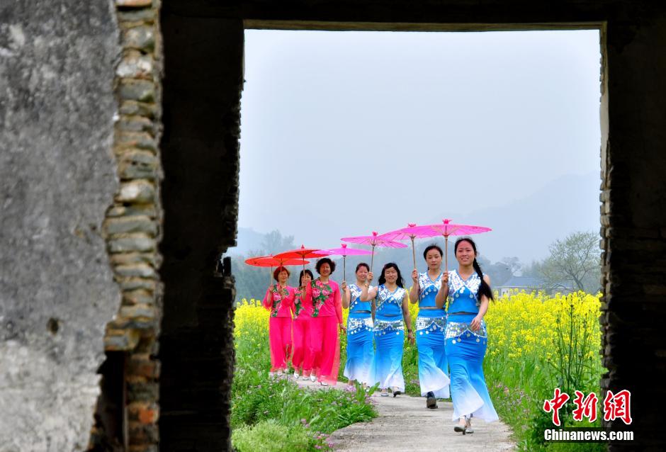 3月20日,江西省德興市海口鎮杜村婦女在田間花海“走秀”。當日,江西德興市海口鎮杜村一批家庭婦女以千畝油菜花海為舞臺,展示自己的才藝形象,希望宣傳家鄉的自然生態與人文歷史,擴大旅游知名度和影響力。德興市海口鎮杜村交通便利,自然風光優美,村內有歷史古跡和名木古樹。 胡敦煌 攝
