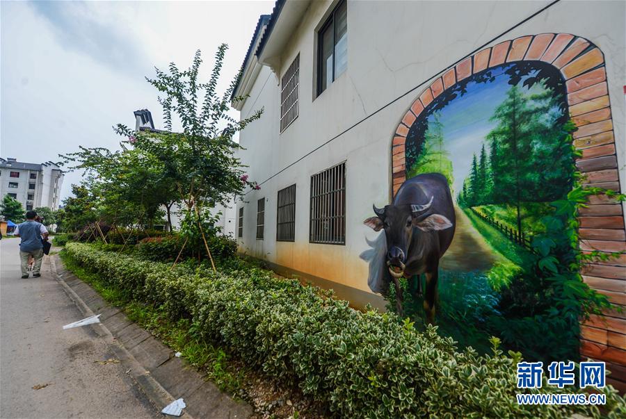 浙江省長興縣北湯村的村舍墻壁上繪有3D畫(7月13日攝)。 7月初,由上海的藝術家團隊繪制的多幅3D藝術畫亮相浙江省長興縣林城鎮北湯村的村舍墻上。林城鎮北湯村是浙江省長興縣新農村建設示范點,此次繪制3D藝術畫墻,是該村提升農村品味、打造“詩畫北湯”的新舉措。 新華社記者徐昱攝
