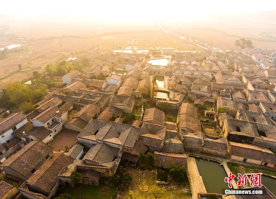12月10日,航拍位于江西金溪縣有著600多年歷史的中國歷史文化名村、中國傳統村落竹橋古村,俯瞰全村,形似一柄巨扇。該村現保存有明代所建民居8幢,明代祠堂1幢,其余為清代建筑,青磚灰瓦,樸實素雅,為贛派建筑最典型的代表。村前溪水長流,良田萬頃,村后茂林修竹,鳥鳴樹幽,身歷其境,如入畫中。傅建斌 攝