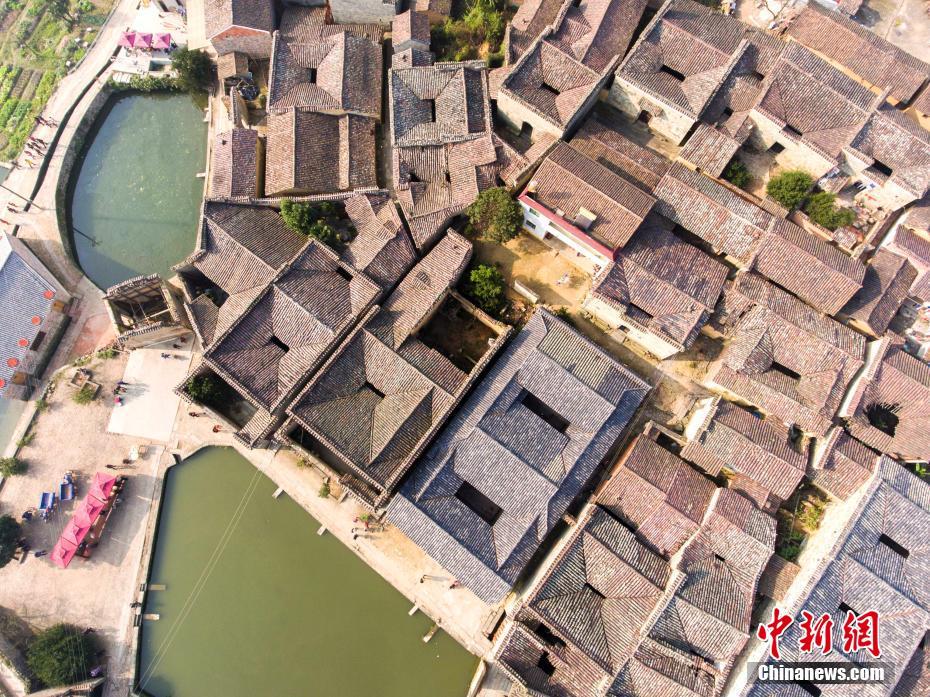 12月10日,航拍位于江西金溪縣有著600多年歷史的中國歷史文化名村、中國傳統村落竹橋古村,俯瞰全村,形似一柄巨扇。該村現保存有明代所建民居8幢,明代祠堂1幢,其余為清代建筑,青磚灰瓦,樸實素雅,為贛派建筑最典型的代表。村前溪水長流,良田萬頃,村后茂林修竹,鳥鳴樹幽,身歷其境,如入畫中。傅建斌 攝