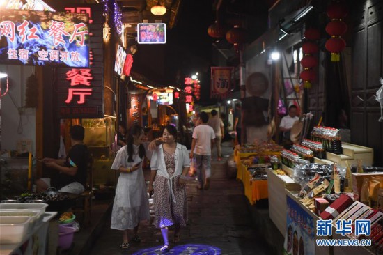 6月11日,游客在湘西土家族苗族自治州永順縣芙蓉鎮景區內游覽。 新華社記者 薛宇舸 攝
