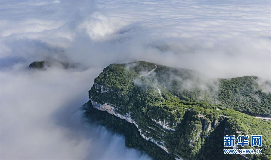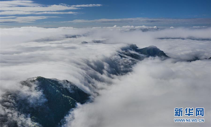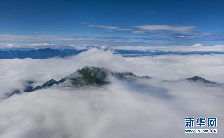 6月10日拍攝的漢中市南鄭區龍頭山主峰云海景觀(無人機照片)。 新華社記者 陶明 攝