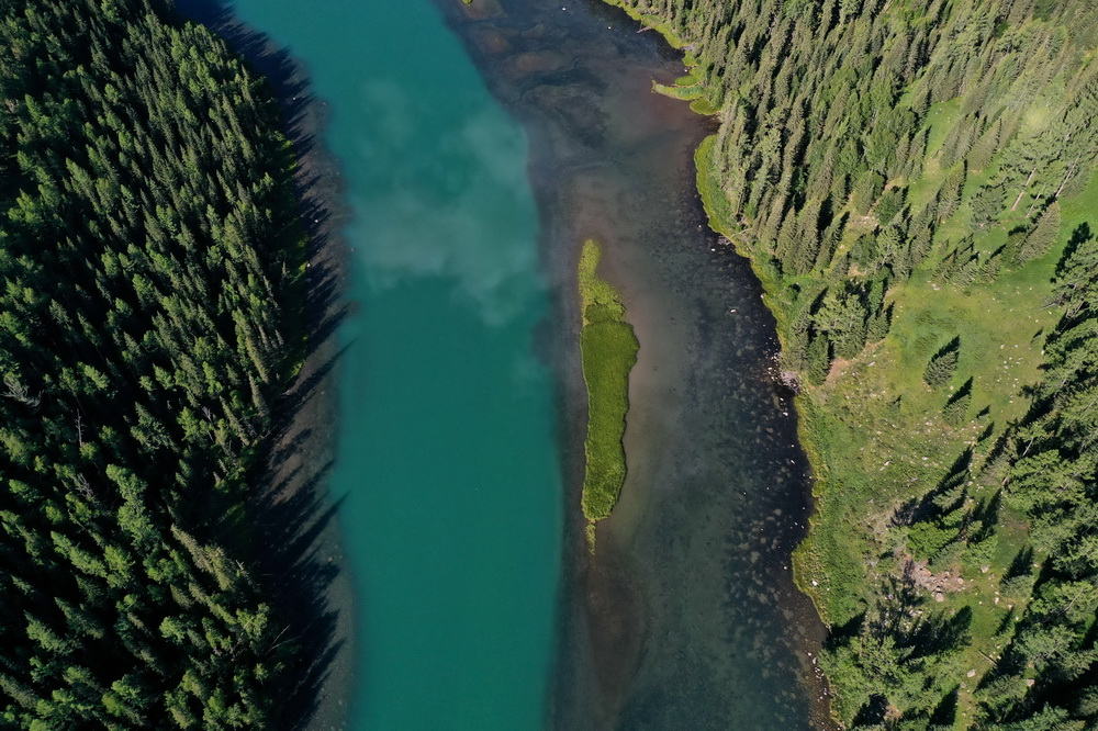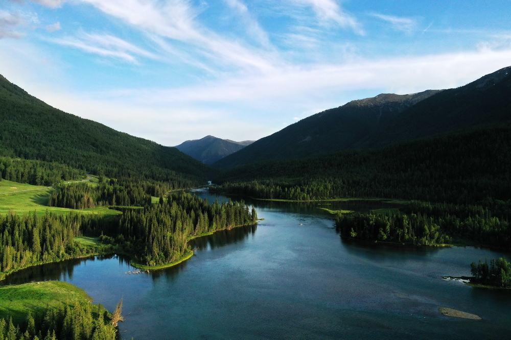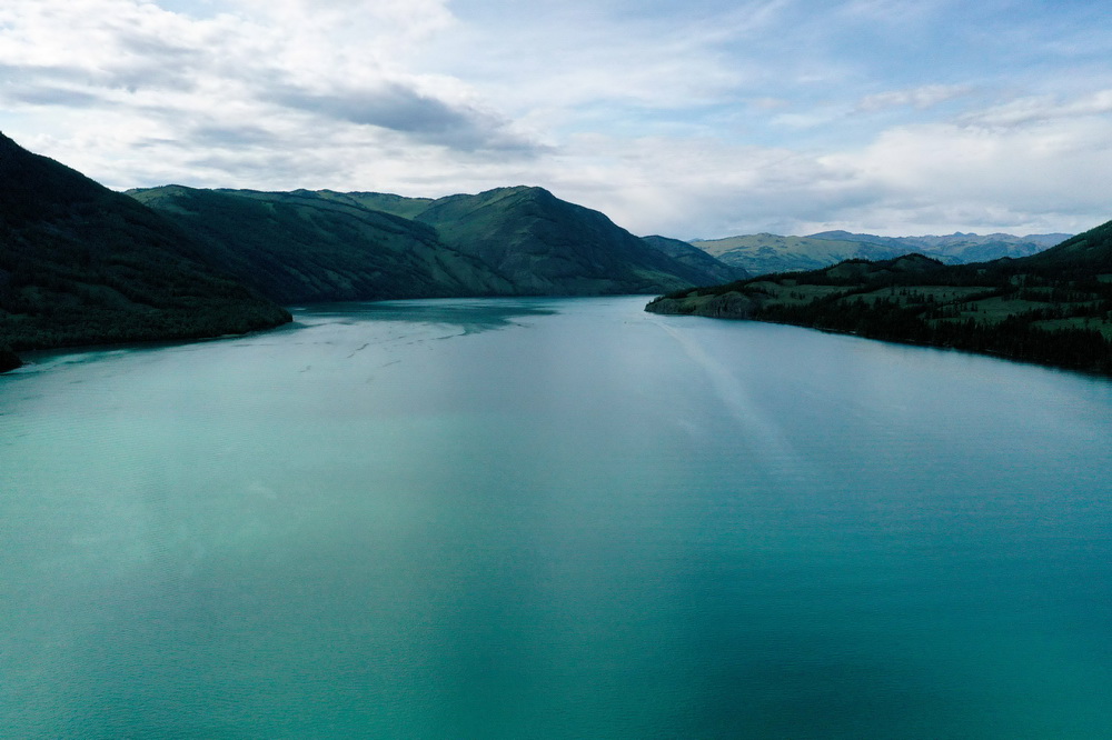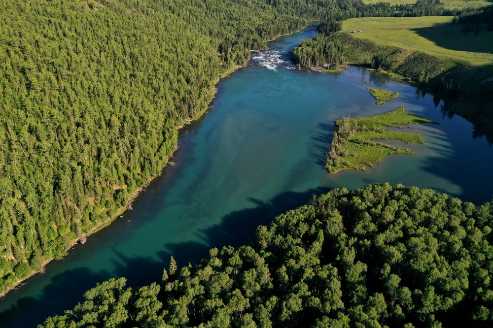 這是6月25日拍攝的新疆喀納斯景區風光(無人機照片)。新華社記者 沙達提 攝