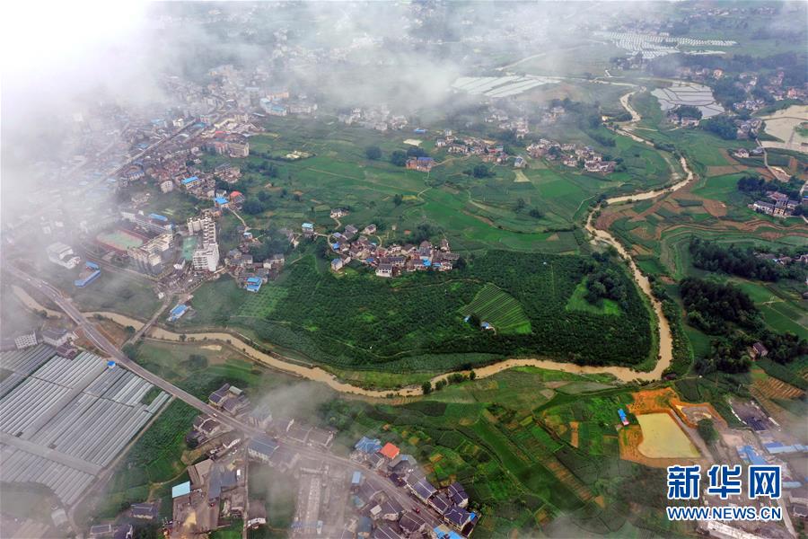 7月1日拍攝的貴州省綏陽縣風華鎮鄉村風光(無人機照片)。 近年來,有“中國詩鄉”美稱的貴州省綏陽縣努力打造美麗鄉村,創建美麗生態。雨后的鄉間山水、田園、林木、民居在薄薄的云霧下寧靜柔美,呈現出一幅幅靚麗的高原鄉村景致。 新華社記者 楊楹 攝