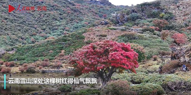 據了解,這棵紅冠樹被當地人稱為野花楸樹,每年深秋時節,這棵樹的樹葉都會變為紅色,吸引了眾多游客前來打卡拍照。