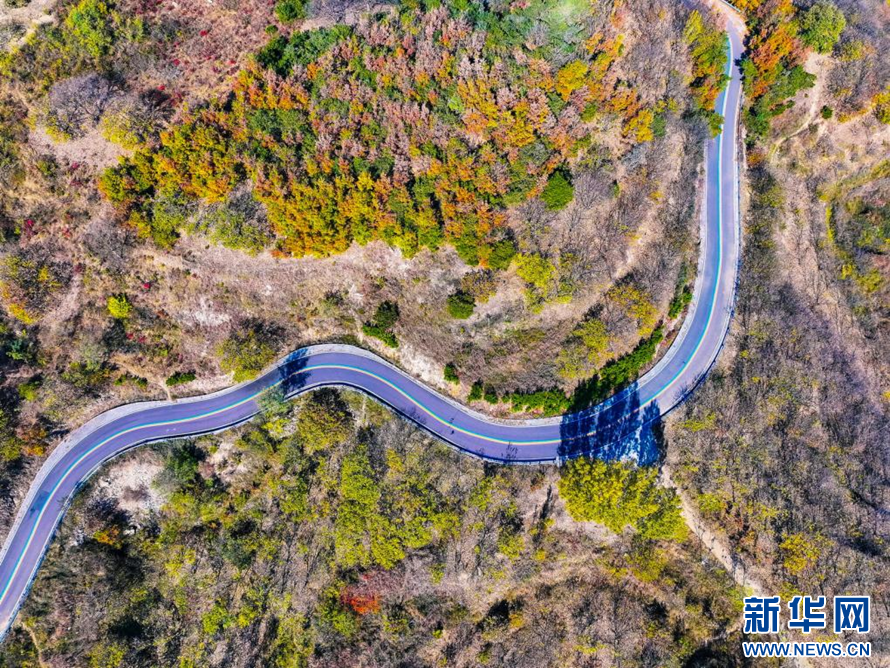 盤山公路仿佛一條飄帶纏繞在山間(無人機照片)。新華網發(薄林 攝)