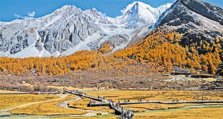 10月31日,游客在四川省甘孜藏族自治州的稻城亞丁景區游覽。新華社記者 儲加音攝