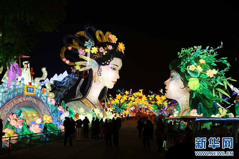 圖為1月13日拍攝的《青城雙姝》燈組。新華網發(曹鵬 攝)