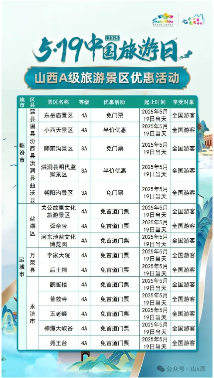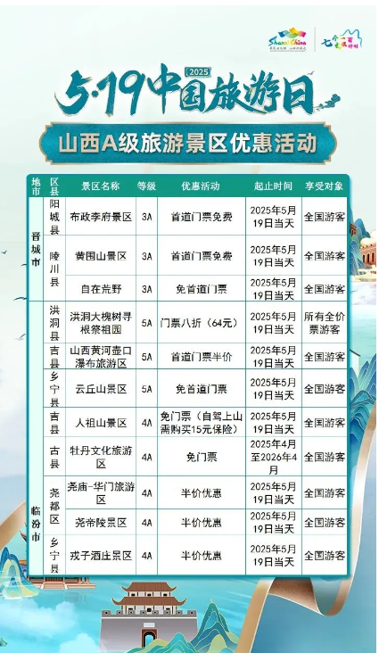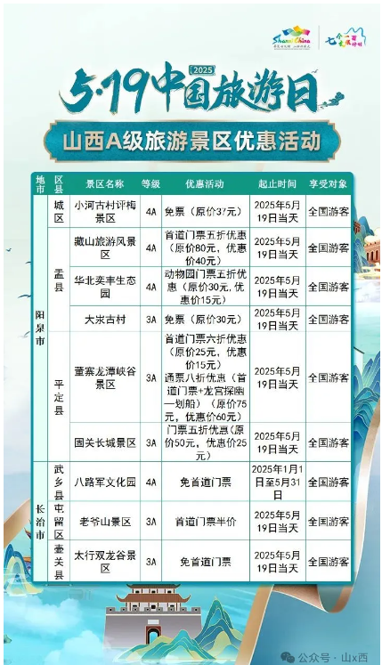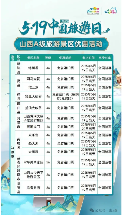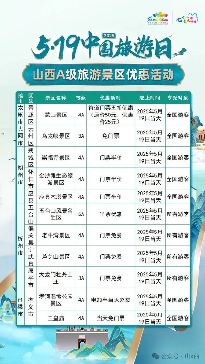 5·19中國旅游日 | 山西A級旅游景區面向全國游客優惠