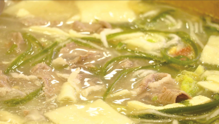 用料講究,特色配菜都要純手工制作。豆腐丸子、肉丸子、燒肉等食材經烹飪后,盡顯治愈味道。熬制數小時的秘制高湯,搭配食客自選食材,經鐵鍋燴制,呈現本真風味。