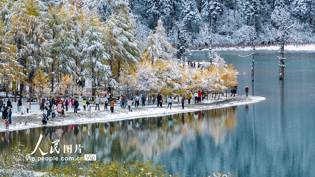2025年10月26日,位于四川省阿壩藏族羌族自治州理縣的畢棚溝風景區秋意正濃,景色如畫,吸引游客前來。方永濤攝(人民圖片網)