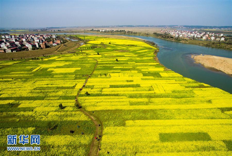 2月28日,江西省新余市新溪鄉龍尾洲區域油菜花競相開放。近日,隨著氣溫的回升,江西新余龍尾洲區域油菜花開放,吸引人們踏青游玩,感受春意。 新華社發(趙春亮 攝)