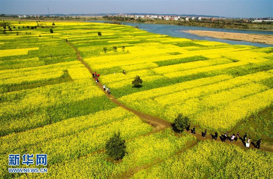 2月28日,江西省新余市新溪鄉龍尾洲區域油菜花競相開放。近日,隨著氣溫的回升,江西新余龍尾洲區域油菜花開放,吸引人們踏青游玩,感受春意。 新華社發(趙春亮 攝)