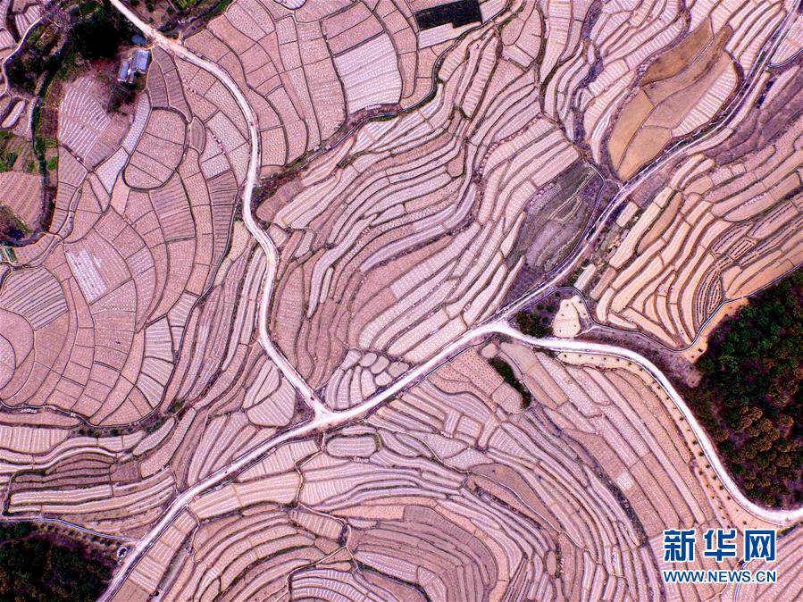 這是3月14日航拍的廣西百色市右江區永樂鎮西北樂村西瓜梯田景色。時下,廣西百色市右江區永樂鎮西北樂村進入西瓜種植護理季節,地膜縱橫交錯的層層瓜田和壯族村落構成一幅美麗的田園畫卷。百色市右江區永樂鎮是廣西有名的西瓜之鄉,全鎮種植西瓜1.5萬畝,年產西瓜2.8萬噸。新華社記者 黃孝邦 攝
