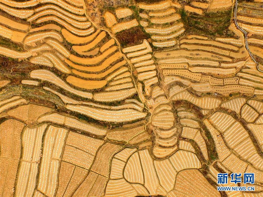 這是3月14日航拍的廣西百色市右江區永樂鎮西北樂村西瓜梯田景色。時下,廣西百色市右江區永樂鎮西北樂村進入西瓜種植護理季節,地膜縱橫交錯的層層瓜田和壯族村落構成一幅美麗的田園畫卷。百色市右江區永樂鎮是廣西有名的西瓜之鄉,全鎮種植西瓜1.5萬畝,年產西瓜2.8萬噸。新華社記者 黃孝邦 攝