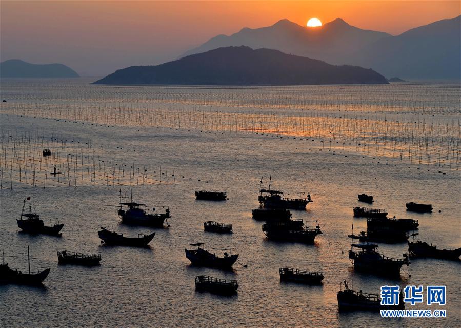 12月9日,夕陽(yáng)西下,一艘漁船穿行在海上紫菜養(yǎng)殖架間。福建省寧德市的霞浦縣以美麗的淺海、灘涂聞名,豐富的旅游資源和人文資源一直是攝影師追逐的靈感所在。 新華社記者魏培全攝