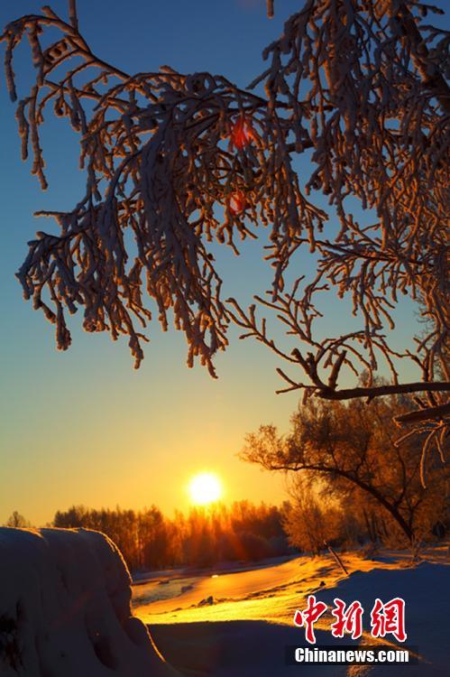 連日來,新疆北部持續低溫,哈巴河縣受寒冷天氣的影響,出現了大面積霜掛美景。一棵棵白樺樹被妝點成銀白色,晶瑩剔透,潔白無瑕,置身其中,如同進入夢幻世界一般。圖為清晨的哈巴河縣銀裝素裹,云霧繚繞。 劉是何 攝