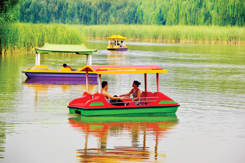近日,原平市市民正在公園湖里劃船,有說有笑,暢談生態環境給大家帶來的福祉。原平重視綠色發展,從“心”重視開始,把綠色理念貫穿在環境保護、生產發展中,從綠色設計、綠色生產、綠色運行、綠色回收、綠色再生產到應用綠色能源、使用綠色包裝、實施綠色營銷、開展綠色貿易等,不斷豐富著綠色發展的內涵和外延。(吉建平 攝)