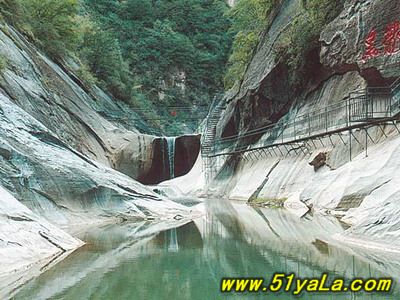 五指峽中的黑龍?zhí)端浅G宄海K年流淌不息,在這個(gè)還有一個(gè)很有趣的說法,據(jù)說每到大旱的時(shí)刻人們就到這幾來求雨,但是求雨的人一定要是屬龍和蛇的,因?yàn)槭刈o(hù)著黑龍?zhí)兜氖且粭l黑龍。清澈的山澗為來到這里的人們帶來了快樂。游人可以泛舟水上,進(jìn)行皮筏漂流。